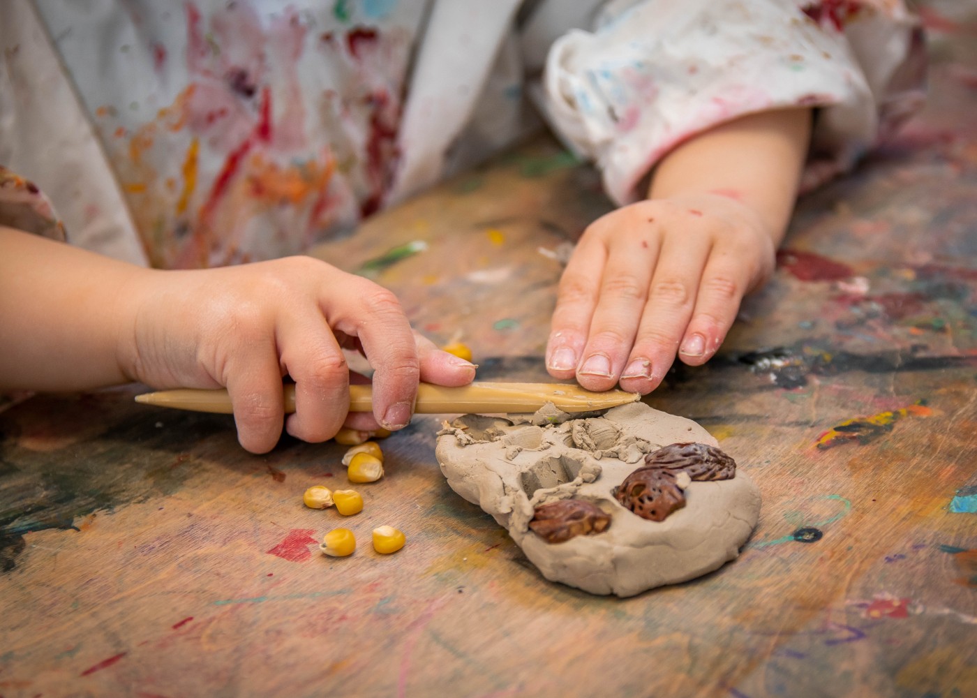 We leggen de focus altijd op het proces in plaats van op het eindresultaat, het gaat om het plezier in creëren. We vragen niet naar wát het kind heeft gemaakt, maar tonen interesse en laten kinderen zelf vertellen over hun creatie.