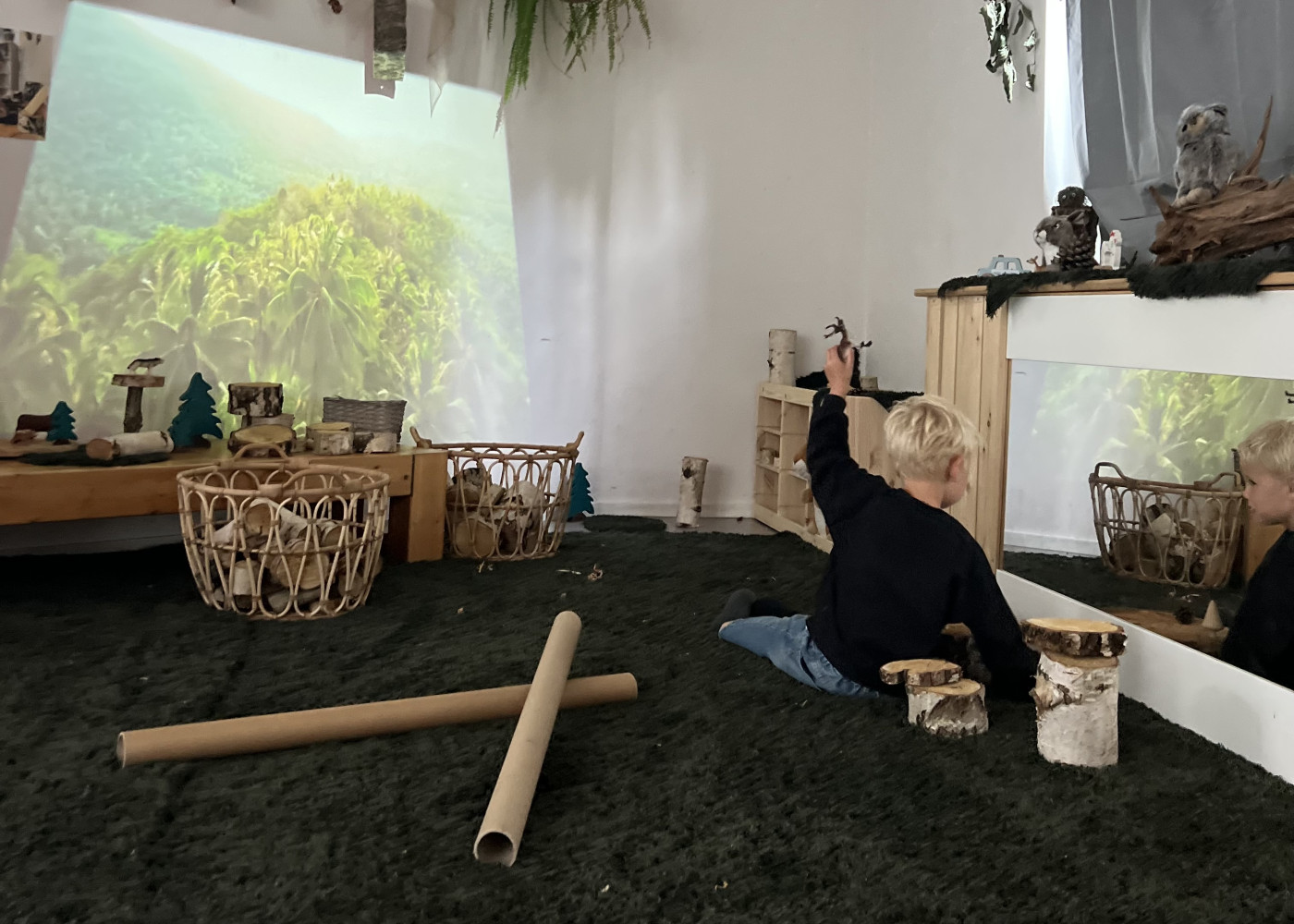Alle groepsruimtes zijn uitdagend ingericht en hierbij gaan we uit van wat kinderen kunnen. De nadruk ligt op de natuur en natuurlijke open (spel)materialen. Op de groepen staan open kasten, met (kosteloze) materialen waar kinderen alles uit kunnen pakken waar ze door worden uitgedaagd. We passen de ruimte steeds aan aan de behoeftes en interesses van de kinderen. Zo blijft eenzelfde groepsruimte steeds nieuwe uitdagingen bieden.